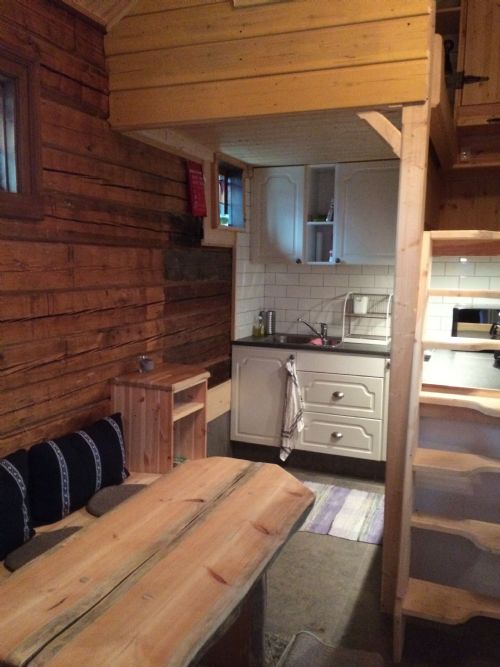 På loftet med ståhöjd i mitten finns 2 st. 140 cm sängar Allrummet är en kombinerad mat och sällskapsplats med en platsbygd soffa med ett bord. TV och DVD finns.